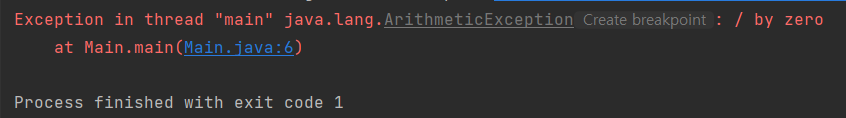 위의 예제를 돌려보면, build는 성공하고 프로그램 실행 후 에러와 함께 종료되었음을 확인할 수 있다.