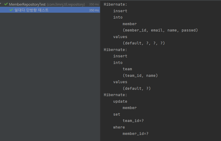 여기서 주의할 점은 연관관계의 주인에는 값을 입력하지 않고, 주인이 아닌 곳에만 입력하는 것이다.