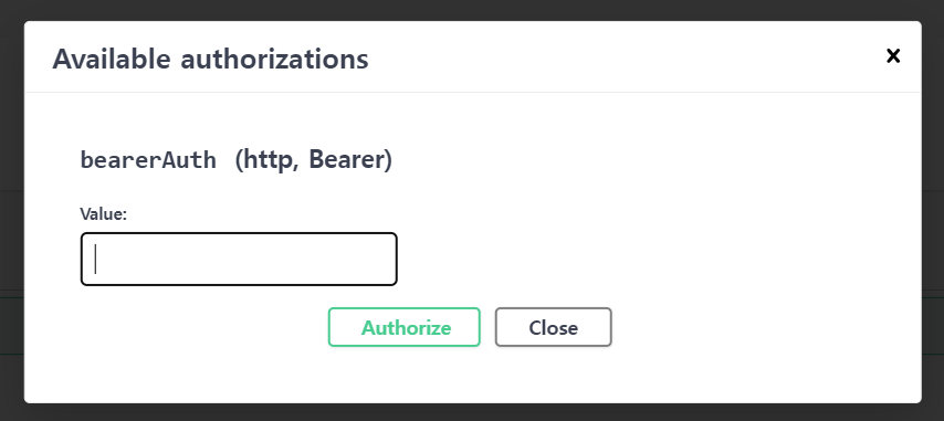 자물쇠를 누르면 아래와 같이 JWT 를 입력할 수 있는 팝업을 확인할 수 있다.