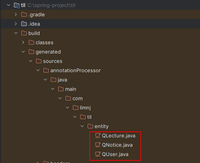 - 위 작업으로 수행된 결과물로 Q클래스를 확인할 수 있다.