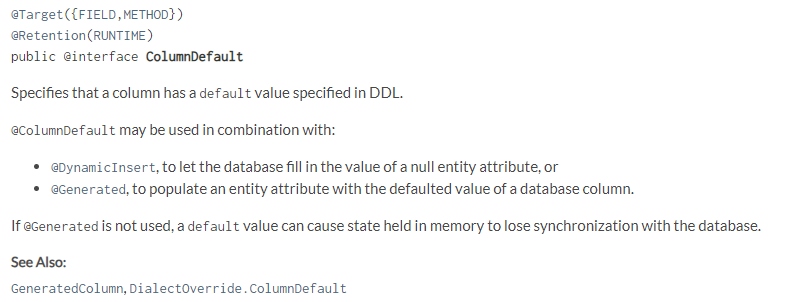 https://docs.jboss.org/hibernate/orm/6.2/javadocs/org/hibernate/annotations/ColumnDefault.html