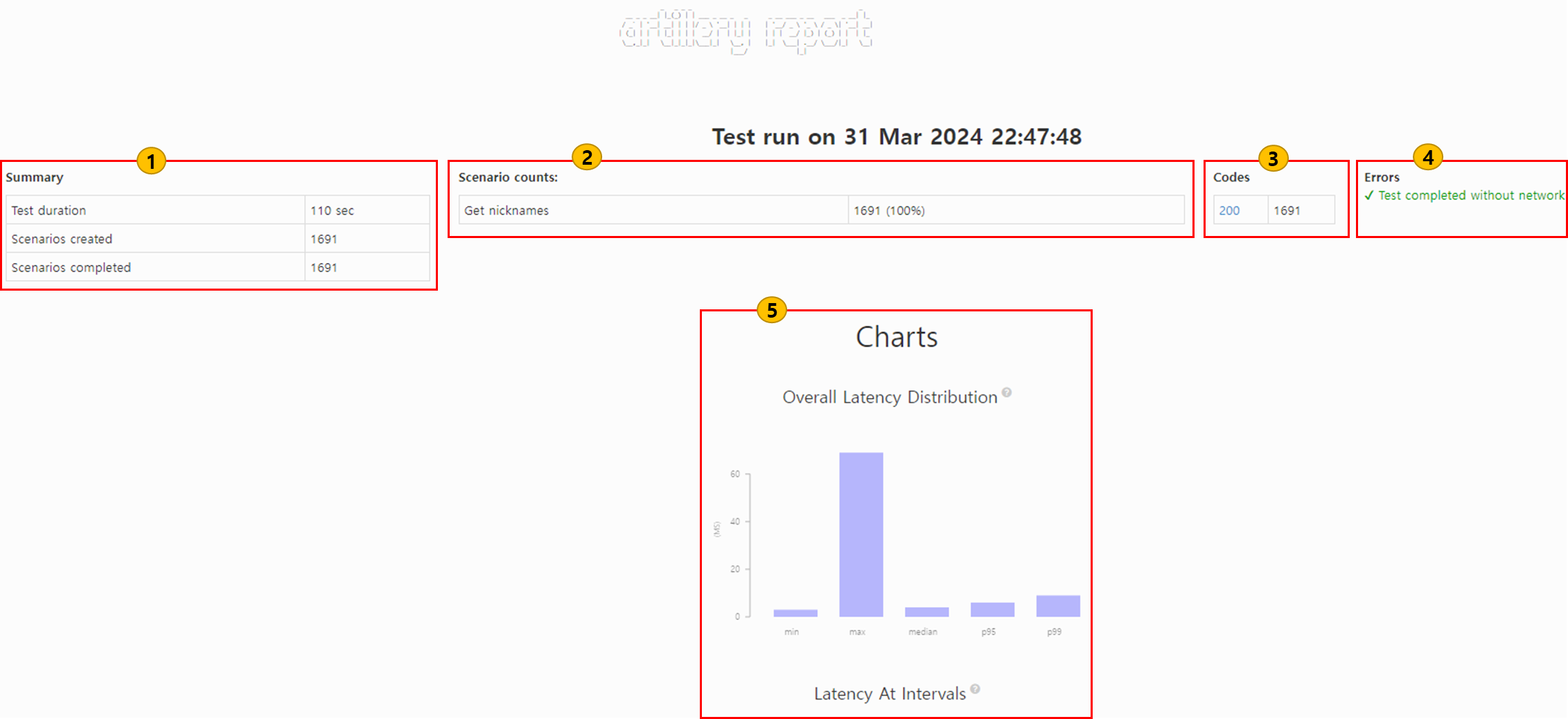 - Latency 분포와 같은 테스트 결과를 차트로 보여준다.