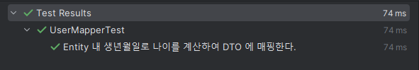 @DisplayName("Entity 내 생년월일로 나이를 계산하여 DTO 에 매핑한다.")
